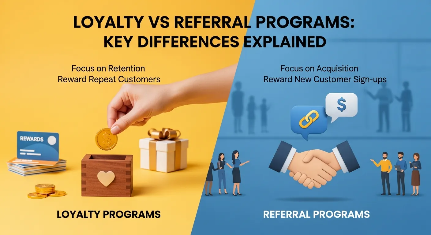 The main difference is the goal: loyalty programs focus on retention, and referral programs focus on acquisition. Comparing Loyalty vs Referral Programs clarifies which approach drives repeat purchases versus new customer growth.